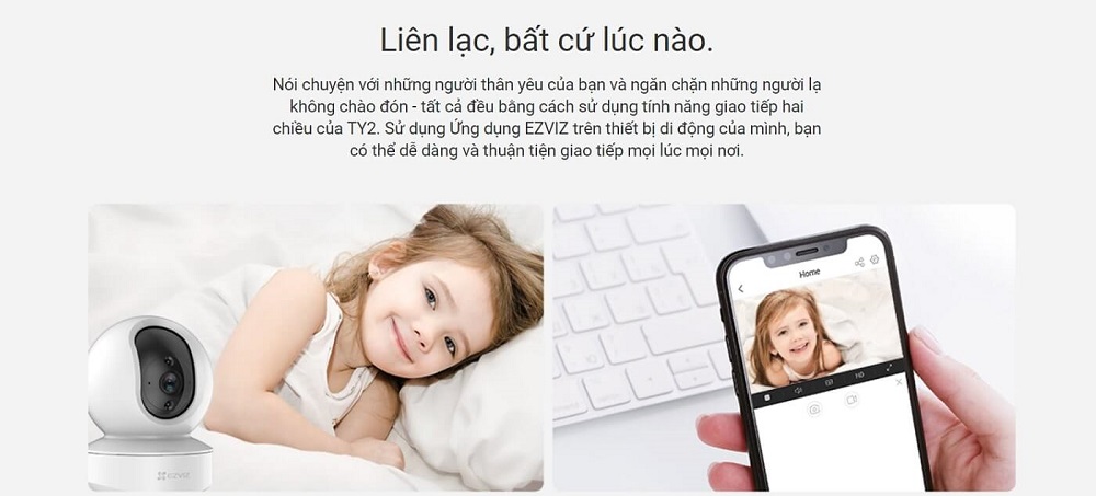 Camera EZVIZ TY2 FULL HD 1080P Xoay 360 độ dòng camera không dây thông minh cho phép bạn dễ dàng quan sát toàn bộ không gian với phạm vi quan sát 360 độ, cùng với những tính năng theo dõi thông minh bảo vệ an toàn cho ngôi nhà của bạn cả ngày lẫn đêm. Theo dõi mọi ngóc ngách với góc quan sát mở rộng 360 độ không điểm mù, đảm bảo bao quát tối đa, không bỏ sót bất cứ chi tiết nào. Âm thanh nói chuyện 2 chiều cho phép trò truyện nhanh với người thân 1 cách nhanh chóng.