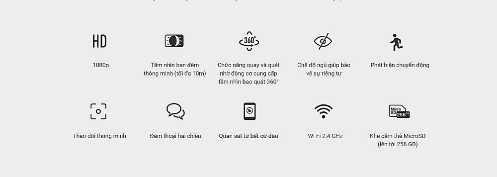 - Chế độ riêng tư cho phép camera tạm ngưng hoạt động khi không cần thiết