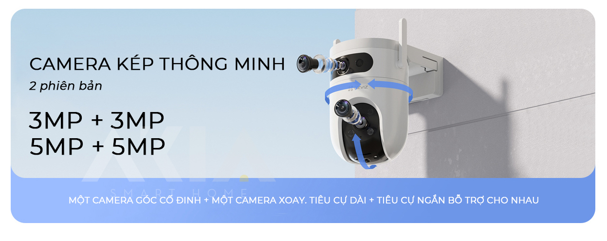 Camera EZVIZ H9c (5MP+5MP) với kết nối không dây wifi không dây có thể là lựa chọn lý tưởng của bạn như một camera ngoài trời giàu tính năng nhằm tăng cường an toàn cho ngôi nhà, đặc biệt là để giám sát khu vực rộng lớn. Với độ phân giải kép 3K+3K vượt trội và góc nhìn 360 độ, nó có thể dễ dàng quan sát sân sau hoặc lối vào gara của bạn mà không có điểm mù. Camera H9c còn bổ sung thêm tính năng phát hiện người và tự động theo dõi để ghi lại các hoạt động quan trọng tốt hơn với các cảnh báo thông minh hơn.