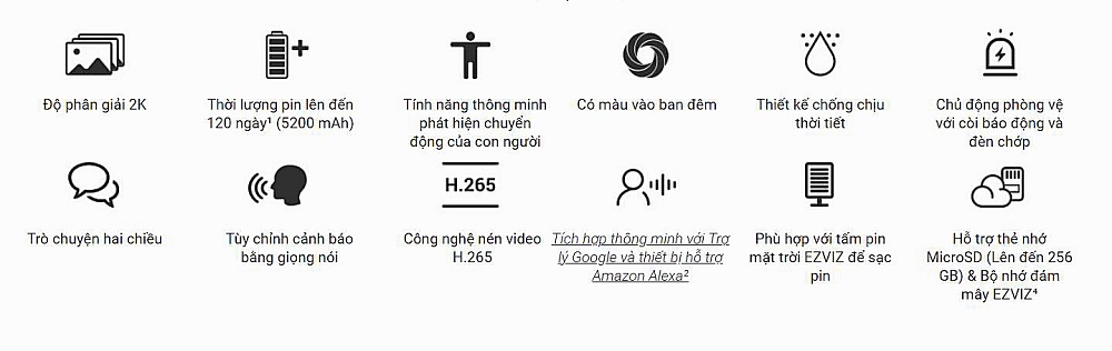 Đặc điểm Camera WiFi Dùng Pin Ngoài Trời EZVIZ EB3 2K