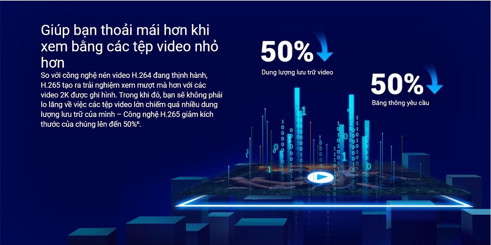 - Hỗ trợ Chuẩn nén H.265 ít tốn dung lượng thẻ nhớ