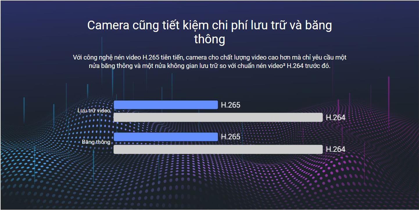 Với công nghệ nén video H.265 tiên tiến, camera cho chất lượng video cao hơn mà chỉ yêu cầu một nửa băng thông và một nửa không gian lưu trữ so với chuẩn nén video³ H.264 trước đó.