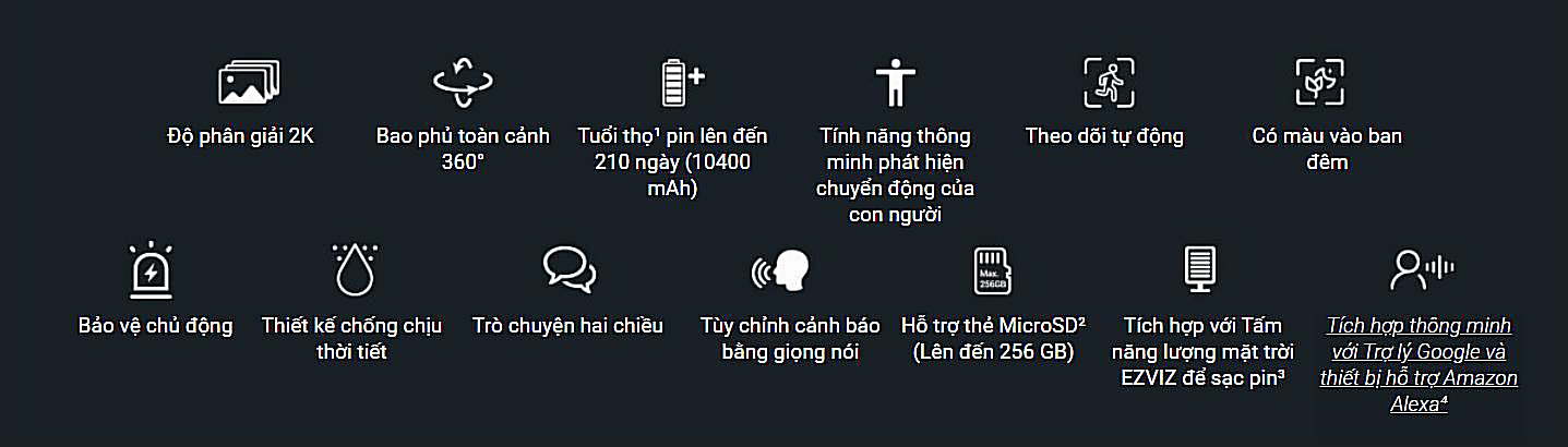 Camera CB2 2K cho thấy một camera gia đình dễ dàng thực sự trông như thế nào - không cần dây 100% để đi bất cứ đâu, có động cơ để thu trong trường nhìn 360 độ và đủ thông minh để cung cấp khả năng bảo vệ ngôi nhà tự động. Các tính năng như phát hiện người, tự động theo dõi, nhìn ban đêm có màu làm cho CB8 2K mang lại hiệu suất tương đương hoặc thậm chí tốt hơn khi so sánh với thiết bị tương đương có dây của nó, trong khi Camera này hoàn toàn loại bỏ việc lắp đặt phức tạp của một camera ngoài trời. Bằng cách làm việc với bảng năng lượng mặt trời tùy chọn, CB8 2K có thể là một chiếc camera mà bạn đặt và quên
