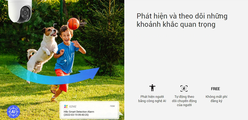 H8c phân biệt người với vật nuôi hoặc vật thể chuyển động không quan trọng. Khi phát hiện hoạt động của người, camera sẽ khóa mục tiêu và tự động xoay để theo dõi chuyển động. Không điều gì có thể thoát khỏi tầm mắt bạn.