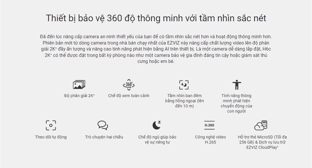– Hỗ trợ lưu trữ EZVIZ CloudPlay (đăng ký mua riêng)