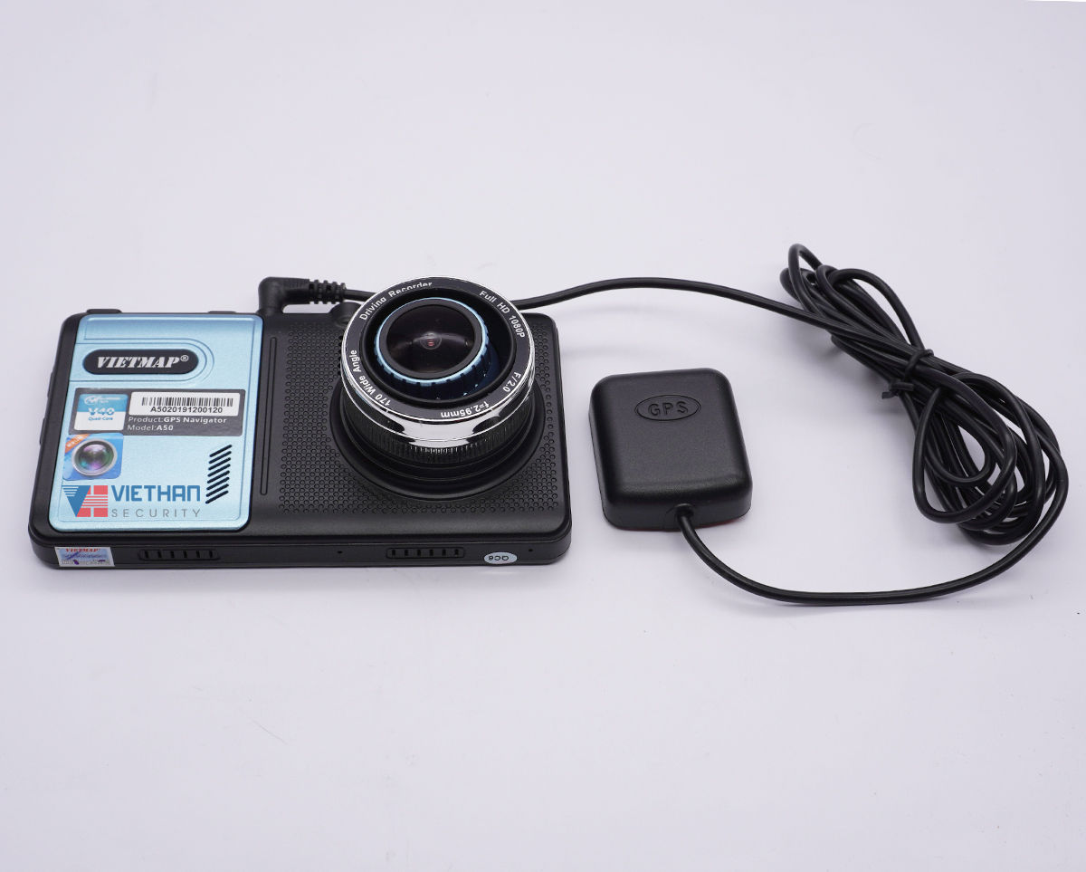 - Camera giám sát hành trình VietMap A50 là thiết bị dẫn đường kết hợp camera hành trình vietmap trước và sau, camera trước ghi hình Full HD, camera sau ghi hình VGA, đồng thời camera sau còn sử dụng làm camera lùi, tự động chuyển màn hình lùi xe khi cài số R. Phần mềm dẫn đường VietMap S1 thông minh, dữ liệu chi tiết 63 tỉnh thành, tìm địa chỉ nhà và tạo lộ trình chính xác, cảnh báo giới hạn tốc độ trên từng cung đường, cập nhật bản đồ miễn phí 3 tháng một lần.