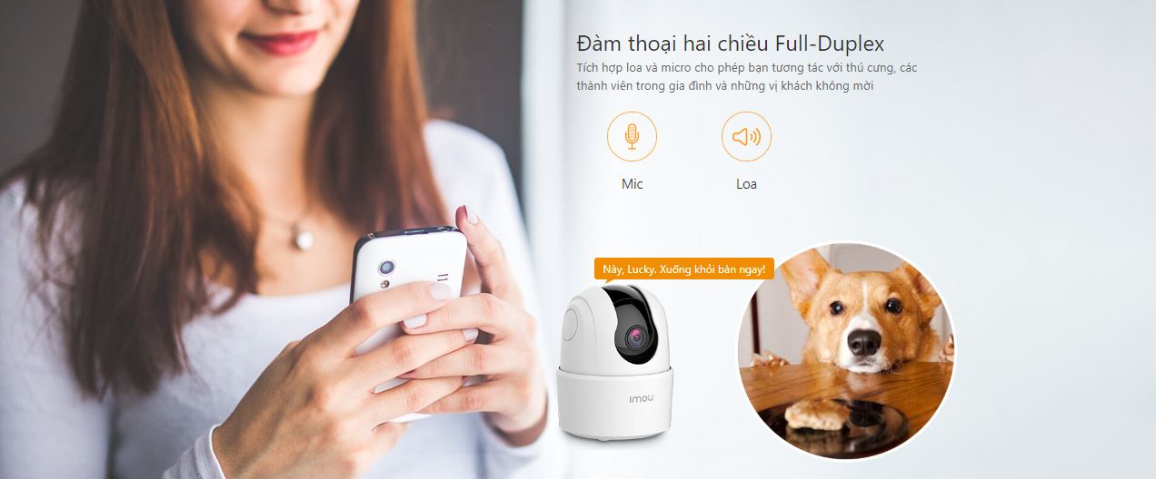 Camera IPC-TA42CP-D được tích hợp mic và loa có thể cho phép bạn tương tác với người thân hoặc thú cưn hoặc những đối tượng lạ xâm nhập trái phép.