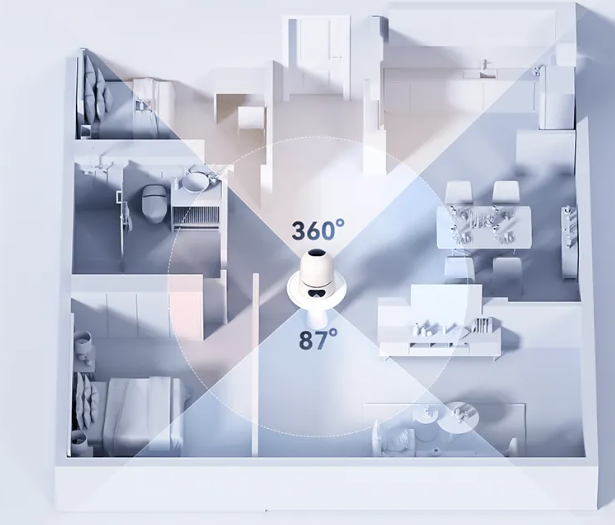 - Phạm vi xem ngang của ống kính quay quét phía trên là 360 ° và điều khiển từ xa của điện thoại di động có góc nhìn rộng.Ống kính cố định bên dưới có trường nhìn lên tới 87°. Góc điều chỉnh thủ công 15° có thể giám sát các khu vực chính
