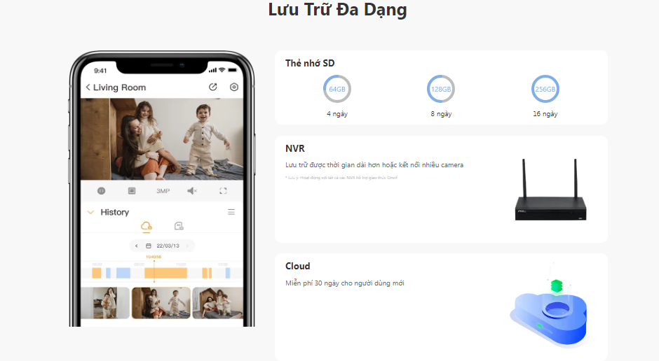 - Hỗ trợ chuẩn ONVIF, Cloud, LAN, tích hợp Wi-Fi với 2 ăng-ten giúp bắt sóng tốt hơn.