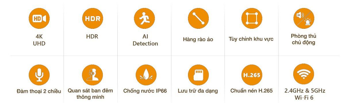 CAMERA WIFI IPC-F88FIP-V2 Knight cung cấp khả năng giám sát trực tiếp 4K UHD với ống kính 3,6mm, nó hỗ trợ bốn chế độ nhìn ban đêm cho độ rõ nét như ban ngày ngay cả trong bóng tối. Được hỗ trợ bởi chip AI và thuật toán học sâu, Knight luôn nhận thức và phản ứng nhanh hơn thông qua phát hiện người / xe / động vật chính xác với vùng có thể tùy chỉnh và hàng rào ảo. Với chứng nhận IP66, máy ảnh có thể được sử dụng ngoài trời với các điều kiện thời tiết khác nhau. Với đèn chiếu tích hợp và còi báo động an ninh 110dB, Knight ngăn những vị khách không chào đón khỏi những gì bạn quan tâm
