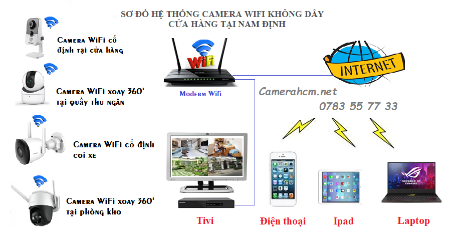 HỆ THỐNG CAMERA WIFI KHÔNG DÂY CHO CỬA HÀNG TẠI NAM ĐỊNH: