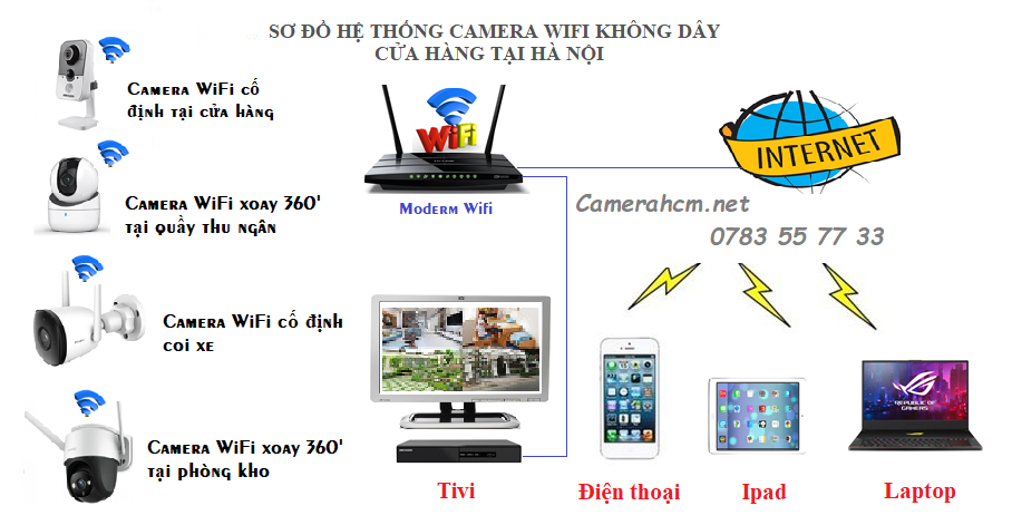 II. HỆ THỐNG CAMERA WIFI KHÔNG DÂY CHO CỬA HÀNG TẠI HÀ NỘI: