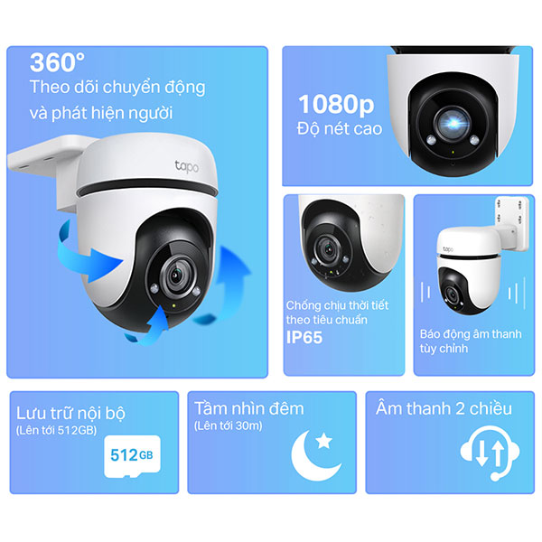 Sản phẩm Camera IP Wifi TP-Link Tapo C500 quay quét ngoài trời chính hãng đang được bày bán tại Tiến Hoàng Phát với chế độ bảo hành 24 tháng