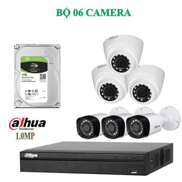 Trọn bộ 06 Camera + Đầu ghi hình 8 kênh Dahua 1MP