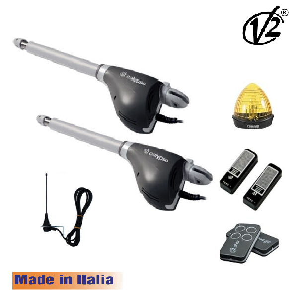 Cổng tự động tay đòn Calypso là sản phẩm của hãng V2 Italia. Thiết bị được nhập khẩu chính hãng đồng bộ. Động cơ điện 230V mạnh mẽ công suất lớn. Motor cổng được lắp đặt cho cổng xoay, tải trọng cánh cổng lên đến 400kg. Với khả năng vận hành thông minh, có cảm biến an toàn khi gặp vật cản an toàn khi sử dụng. Motor Cổng tự động tay đòn Calypso phù hợp lắp đặt cho các công trình nhà biệt thự, liền kề, khu nhà vườn, nhà phố… mang đến các giải pháp hoàn hảo, thông minh, an toàn và thuận tiện cho khách hàng