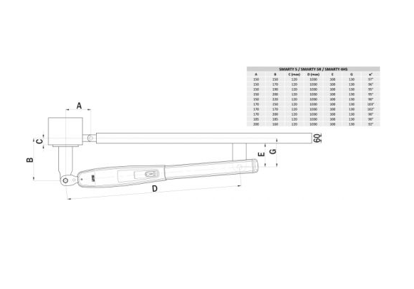 - Roger Smarty 7 là dòng Motor cánh tay đòn được thiết kế chuyên dụng cho những loại cửa lớn và nặng. Motor có công suất 200W, có lực đầy từ 600 đến 7000N giúp vận hành các cánh cổng nặng lên đến 1.400 kg /1 cánh.