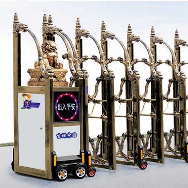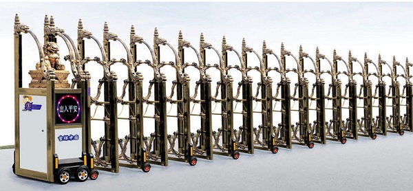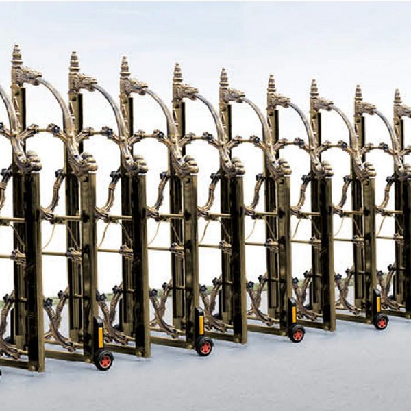 Cổng xếp Mil15 là mẫu cổng được yêu thích nhất hiện nay. Cổng hợp kim nhôm tự động Mil15 nổi bật với vẻ đẹp sang trọng có màu vàng đồng, thiết kế theo phong cách hoàng gia góp phần làm tăng sự đẳng cấp, chuyên nghiệp cho công trình lắp đặt.