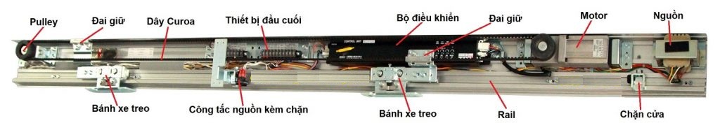 - Rail – Thanh dẫn hướng: Rail làm bằng hợp kim nhôm cao cấp siêu bền chịu được độ mài mòn cao, việc cắt rail cho phù hợp với không gian lắp đặt cũng như bảo trì bảo dưỡng cửa tự động trở nên cực kỳ dễ dàng.