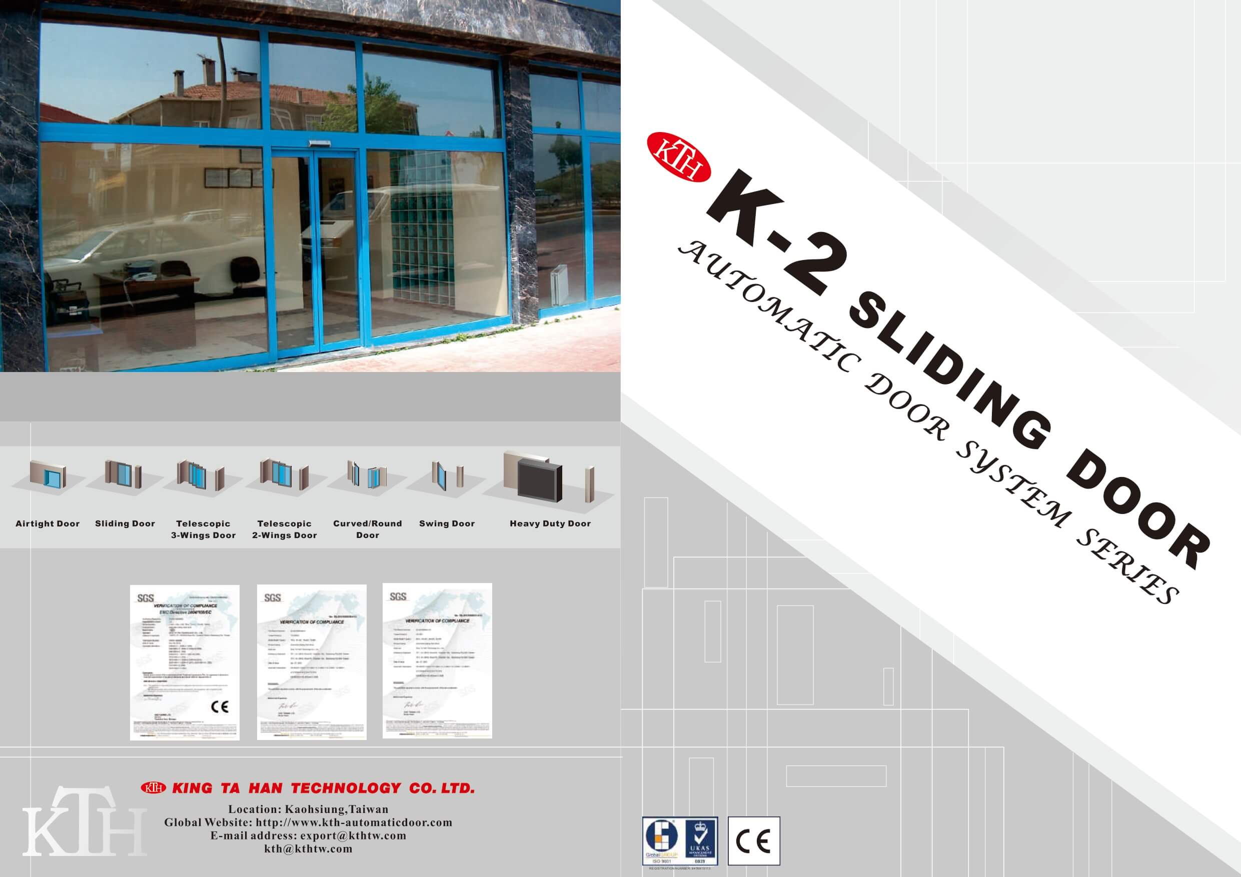 KING TA HAN ( KTH) là thương hiệu đến từ Đài Loan nhà sản xuất thiết bị tự động dàn đầu tại Đài Loan kinh nghiêm 25 năm qua cung cấp sản phẩm chất lượng vượt trội theo tiêu chuẩn Châu Âu. Thiết bị cửa Kính trượt tự động Model KTH Model:K-2 được sử dụng mở 2 cánh hoạch 1 cánh tự động mở khi có người ra vào, sản phẩm KTH Model K2 được sử dụng rộng rãi trên toàn cầu & các công trình dự án tin dùng Siêu thị, tòa nhà cao tầng, các khu thương mại, văn phòng Cty....