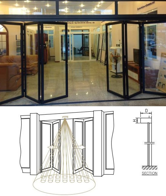 - Cửa mở gấp tự động rất an toàn và phù hợp cho phòng điều hành / lối đi / phòng tắm của bệnh viện, hành lang văn phòng, các khu phân xưởng… bởi vì nó chiếm không nhiều không gian và được lắp đặt đơn giản.