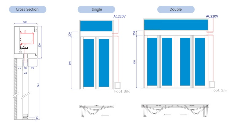 Cửa kính tự động woosung V100 và V200