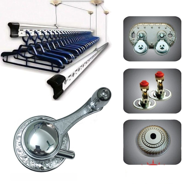 Buli chính hãng: Mỗi bộ giàn phơi sẽ có 4 buly. Tác dụng của buly là để dẫn động dây cáp và treo thanh phơi phía bên dưới. Buly thường được làm từ hợp kim không ghỉ và được gắn cố định trên trần bằng bulong nở sắt. Ngoài ra còn có dẫn hướng để thay đẩy phương truyền lực từ bộ tời đến các buly dẫn động.
