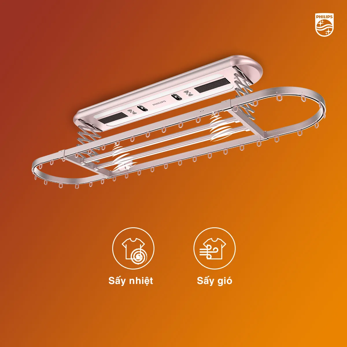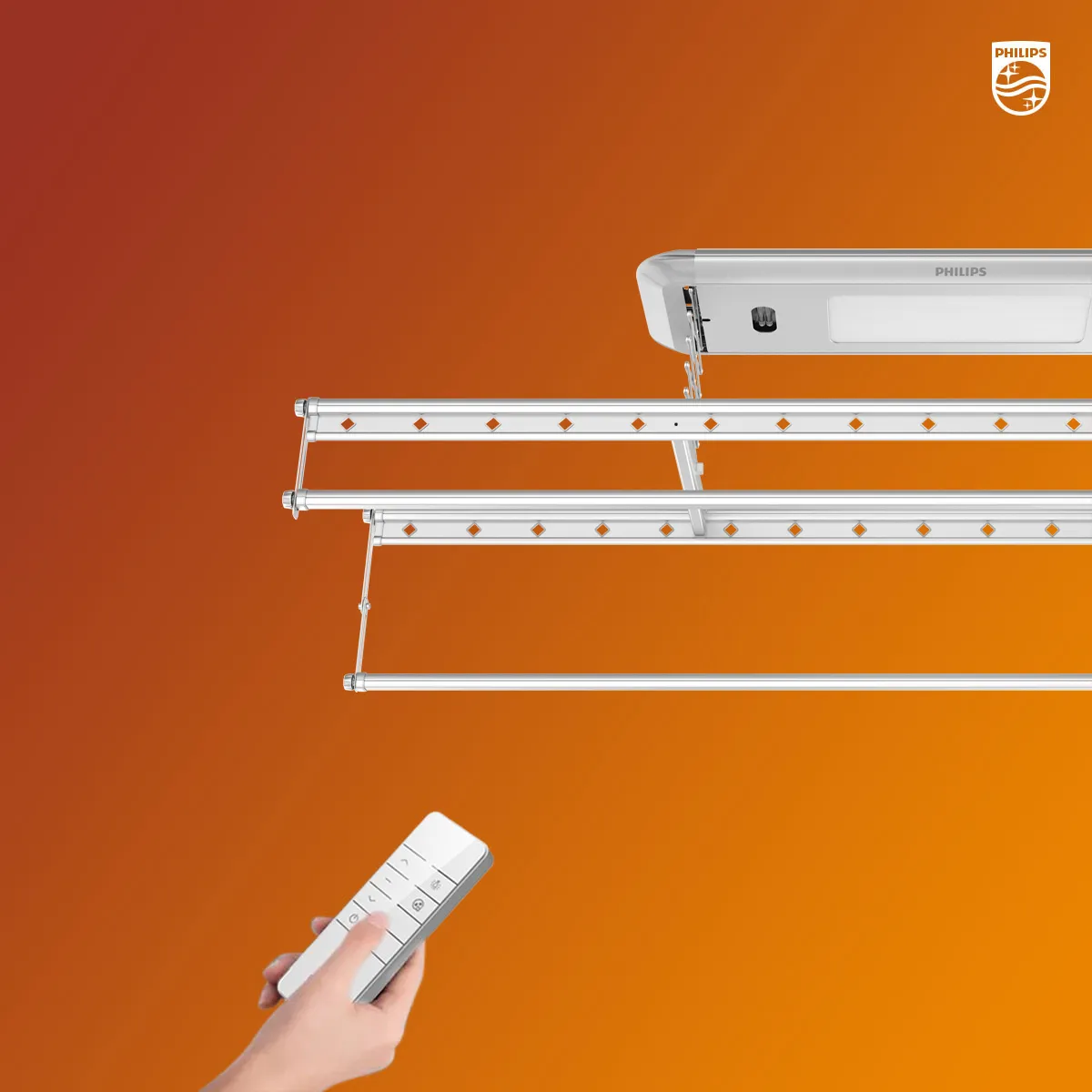 Khác với các dòng giàn phơi sử dụng bộ tời, Philips SDR801 tự động hoàn toàn với hai phương thức điều khiển từ xa: remote và kết nối điện thoại thông minh.