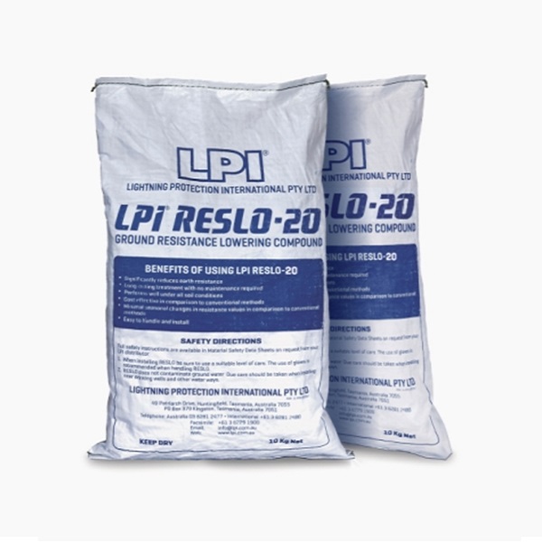 Hóa chất giam điện trở đất Reslo (Úc) sử dụng cải tạo các bãi tiếp địa chống sét, tiếp địa nối đất, tiếp địa an toàn điện đối với những nơi có điện trở suất cao như vùng đồi núi, không chỉ vậy Reslo còn khả năng làm giảm điện trở suất của đất ngay cả đối với các loại đất có độ dẫn điện trung tính.