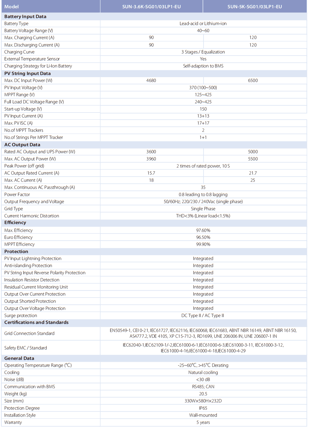 Thông số kỹ thuật Inverter Hybrid Deye 5kW SUN-5K-LP1-EU