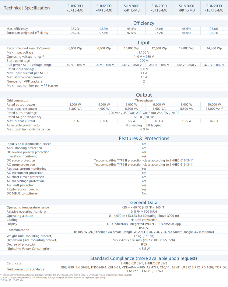 Thông số kỹ thuật Inverter Huawei SUN2000-10KTL-M0