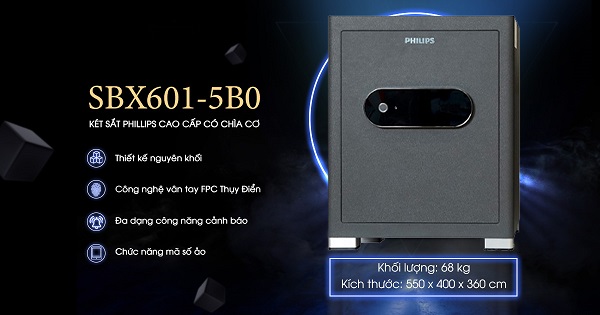 Két sắt điện tử Philips SBX601-5B0 là mẫu két sắt thông minh mở khóa hoàn toàn bằng các phương thức điện tử. Không cần dùng tới chìa cơ, SBX601 sử dụng các nghệ mở khóa hiện đại: vân tay và mã số.