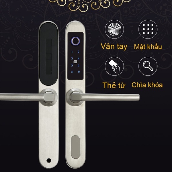 – Chế độ: Vân tay, Mã số, thẻ từ, chìa cơ