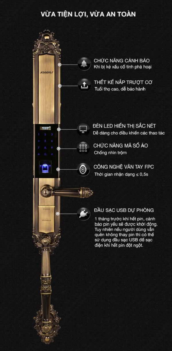 - Đầu đọc vân tay được sản xuất tại thụy điển, xác nhận vân tay trong vòng 0.5s