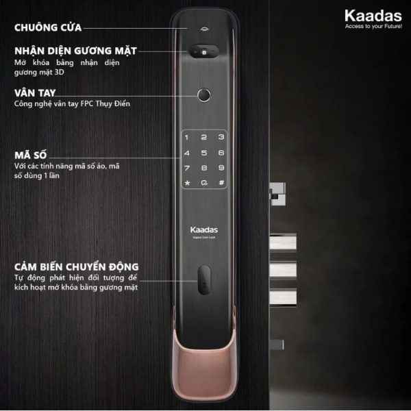 Khóa cửa vân tay Kaadas K20-F (Face ID) là dòng khóa Nhận diện khuôn mặt là công nghệ hoàn toàn mới trên toàn thế giới được Kaadas đi đầu ứng dụng vào việc vận hành khóa cửa vân tay cao cấp cho độ chính xác tuyệt đối, độ ổn định hoạt động cao. Lamboghini 3D Face với tính năng đa dạng cao cấp của phiên bản Lamboghini trước đó cộng thêm công nghệ 3D Face hoàn toàn mới giúp sản phẩm đi tiên phong trong làng công nghệ khóa thông minh.