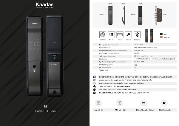 Thông số kỹ thuật Khóa cửa vân tay Kaadas K9
