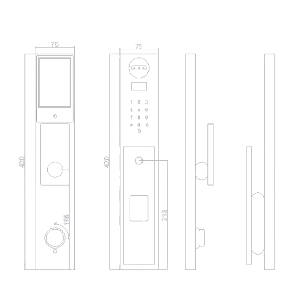 - Kiểu mở khóa : Khuôn mặt + Vân tay + Mật mã + Thẻ từ + Chìa cơ + điện thoại