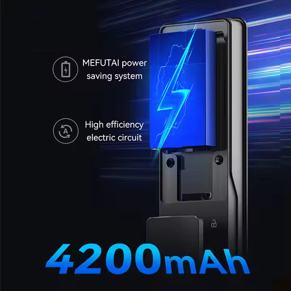Nguồn điện với dung lượng pin 4200 mAh, có thể sạc lại qua cổng micro USB. DC 7.0V-8.4V, pin sạc 1 lần cho thời gian sử dụng từ 4 – 6 tháng. Báo hiệu bằng đèn và âm thanh khi pin yếu giúp chủ nhà tránh phải tình trạng hết pin đột ngột