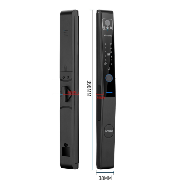 Khóa thông minh Kapler KL-219F với tính năng mở cửa hiện đại 7 trong 1, nhận diện gương mặt (Face ID), mở khóa từ xa qua điện thoại (App Tuya), vân Tay, thẻ Từ, mã Số và chìa cơ, dung lượng đăng ký lớn 100 Face Id, 295 (Vân tay,thẻ từ,mã số), 5 admin.