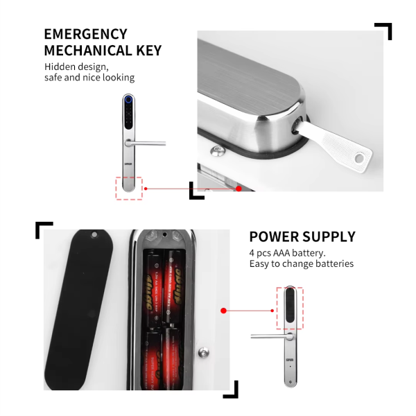 Vận hành 5 chức năng phong phú: Mở khóa bằng vân tay vân tay FPC thụy điển, mở khóa bằng mật mã cho phép cài đặt mã số ảo chống nhìn trộm, Mở khóa bằng thẻ từ IC, mở khoá bằng App Bluetooth, chìa khóa Vật Lý chìa khóa chống sao chép.