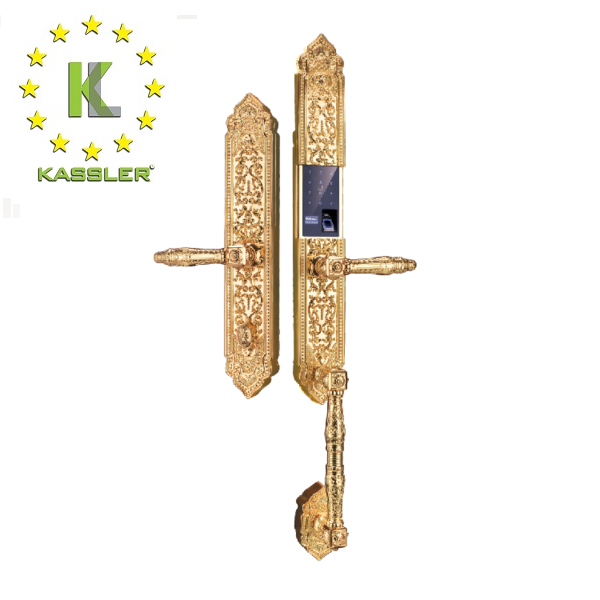 Khóa vân tay Kassler KL-939- Mạ vàng 24k được thiết kế với đường nét hoa văn tinh tế, vừa mang tính cổ điển, vừa mang tính hiện đại, rất ít có sản phẩm nào thu hút khách hàng từ cái nhìn đầu tiên như Khóa vân tay Kassler KL-939- Mạ vàng 24k.