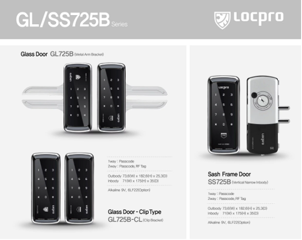 Locpro 725B là mẫu khóa chuyên dụng cho cửa kính, với thiết kế hiện đại. Khóa có thể mở khóa bằng mã số, thẻ từ, cùng với chế độ tự động khóa khi cửa đóng mang lại sự an toàn, tiện lợi trong quá trình sử dụng cho khách hàng