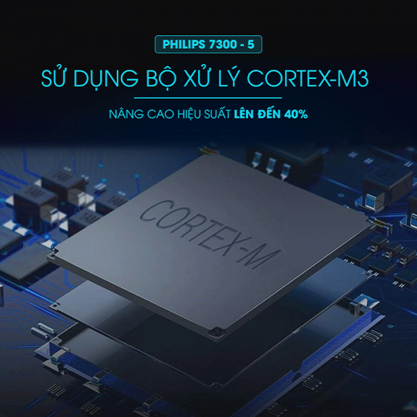 – Philips 7300-5 sử dụng bộ xử lý Cortex-M3 giúp nâng cao hiệu suất lên đến 40%. Tốc độ xử lý cực kỳ nhạy bén: từ tốc độ đọc dữ liệu vào như vân tay, mã số, thẻ từ,.. tới việc nhận diện, đưa ra phương án xử lý (mở khóa hay báo động ),.. Mọi quá trình chỉ diễn ra trong vòng chưa tới 0,5s. Với sự hiện diện của chip Cortex-M3. Đã nâng tầm khóa Philips 7300-5 lên một vị thế mới trong hệ thống khóa thông minh cao cấp.