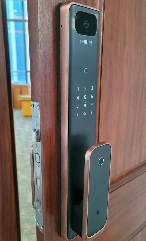 Thiết kế thân khóa tự động, Khóa cửa vân tay Philips Alpha-VP-5HWS sẽ tự động khóa khi cửa được đóng mà không cần người dùng thao tác gì thêm, rất tiện lợi. Khi cần đi lại nhiều thì có thể tắt chế độ khóa tự động.