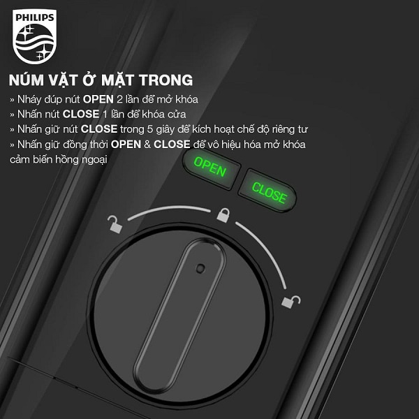 Tính năng khóa tự động: Khóa Philips là dòng khóa tự động hoàn toàn, khi bạn khép cửa khóa tự động bật hết chốt khóa cửa lại mà không cần thêm bất kỳ thao tác nào. Như vậy, bạn không cần lo lắng khi đi ra ngoài mà chưa khóa cửa. Cực kỳ tiện lợi và an toàn.