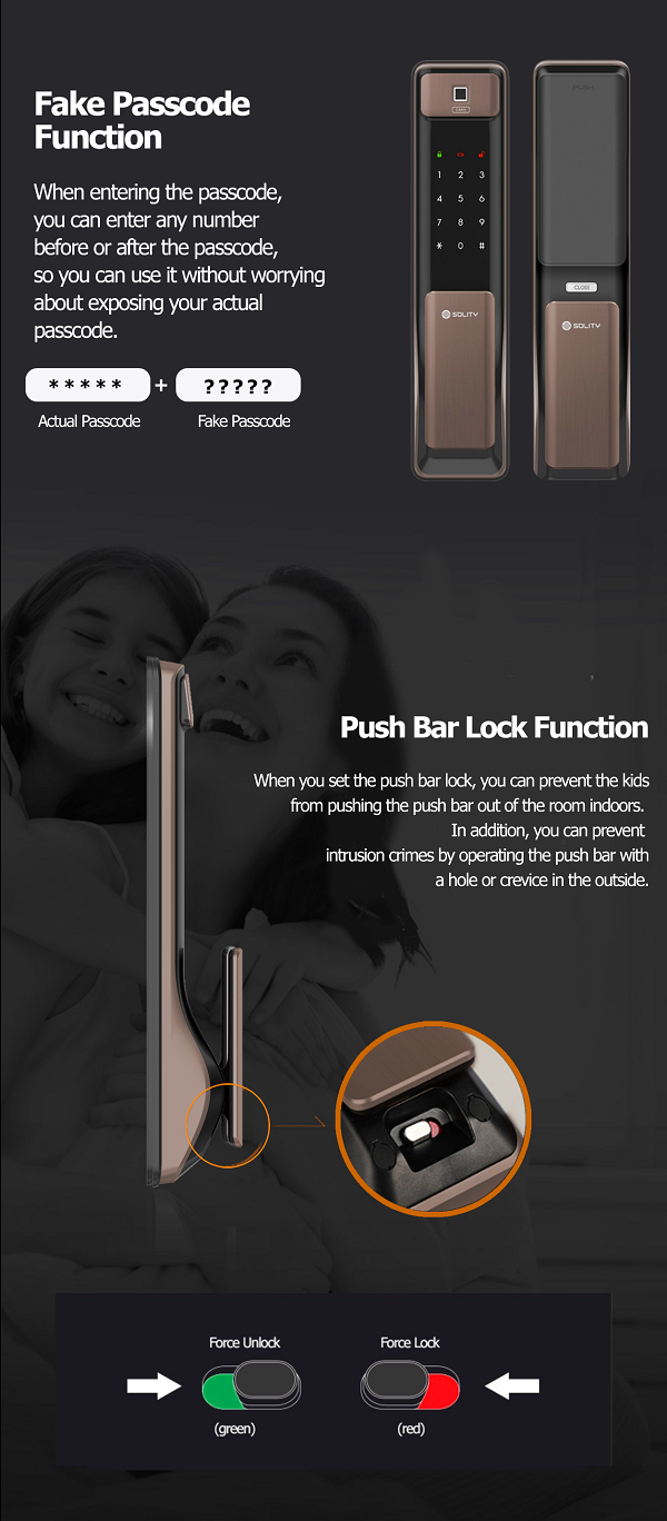 Khóa được trang bị đến 5 phương pháp mở khóa khác nhau đơn giản, rất dễ sử dụng. Tất cả đều hoạt động đảm bảo an toàn, quy định chặt chẽ và vô cùng nhạy bén, phù hợp với mọi thành viên gia đình, đáp ứng xử lý đa dạng mọi tình huống, bao gồm:
