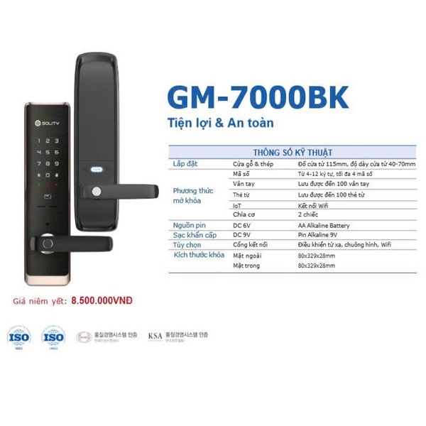 2. Thông Số Kỹ Thuật Khoá Cửa Vân Tay Solity GM-7000BK