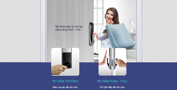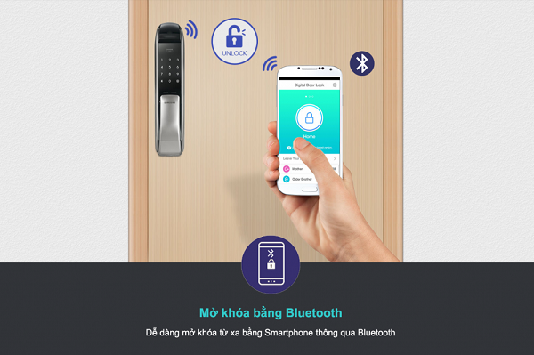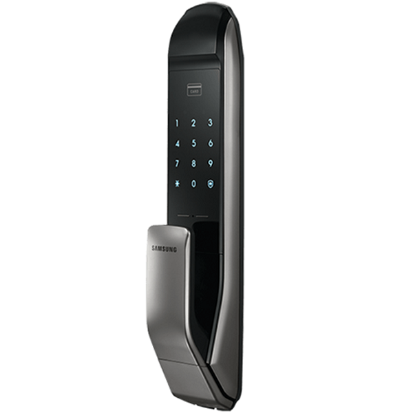 Là mẫu khóa cửa tay nắm dạng Push – Pull mới nhất của Samsung mở khóa bằng mã số, thẻ từ, chìa khóa và Smartphone. Được tích hợp trên chức năng mở khóa qua Bluetooth, không những có thể mở khóa từ xa mà còn có thể nhận thông báo khi có người mở cửa và xem lại lịch sử ra vào.