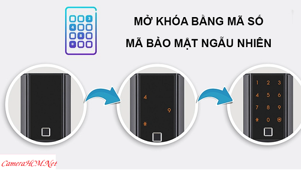 – Mở cửa bằng : Vân tay, mã số ( mật khẩu ) hoặc chìa cơ.