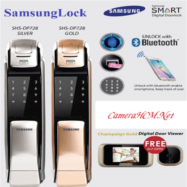 Khóa cửa vân tay Samsung SHP-DP728 là mẫu sản phẩm khóa cửa vân tay cao cấp và hiện đại của hãng Samsung. Khóa Samsung SHP-DP728 được thiết kế dựa trên phiên bản khóa cửa vân tay Samsung SHS-P718 tích hợp thêm chức năng mở khóa và quản lý thời gian mở khóa thông qua ứng dụng cài đặt trên điện thoại Smartphone.