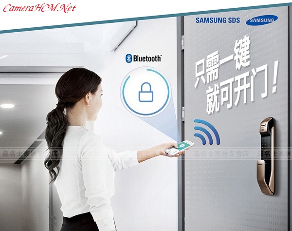 Khóa cửa vân tay Samsung SHP-DP728 thiết kế tích hợp được với các dòng điện thoại thông minh cho phép mở khóa bằng điện thoại thông qua phần mền cài đặt trên Smarphone và hoạt động nhờ Blutooth. Việc sử dụng mở khóa bằng điện thoại thông qua phần mềm giúp quản lý, thông báo qua điện thoại thời gian mở khóa của các thành viên.